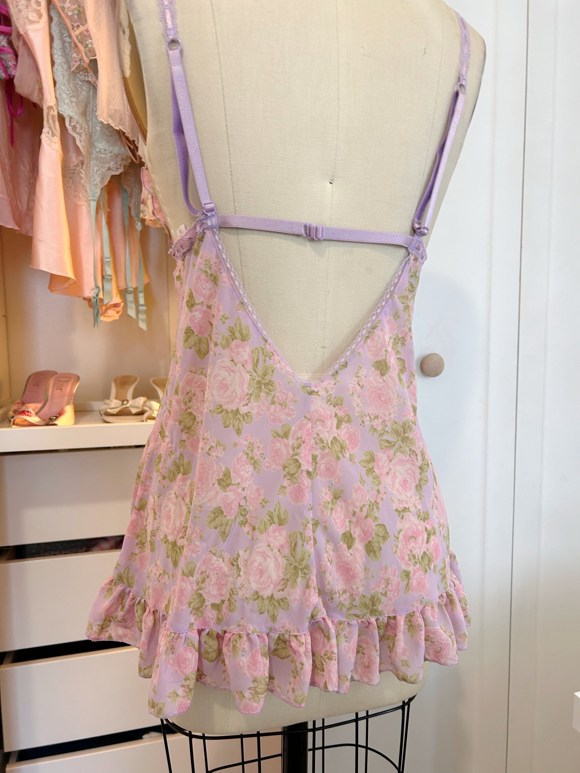 Victoria Secret purple and pink floral babydoll slip. The slip is short and flirty!